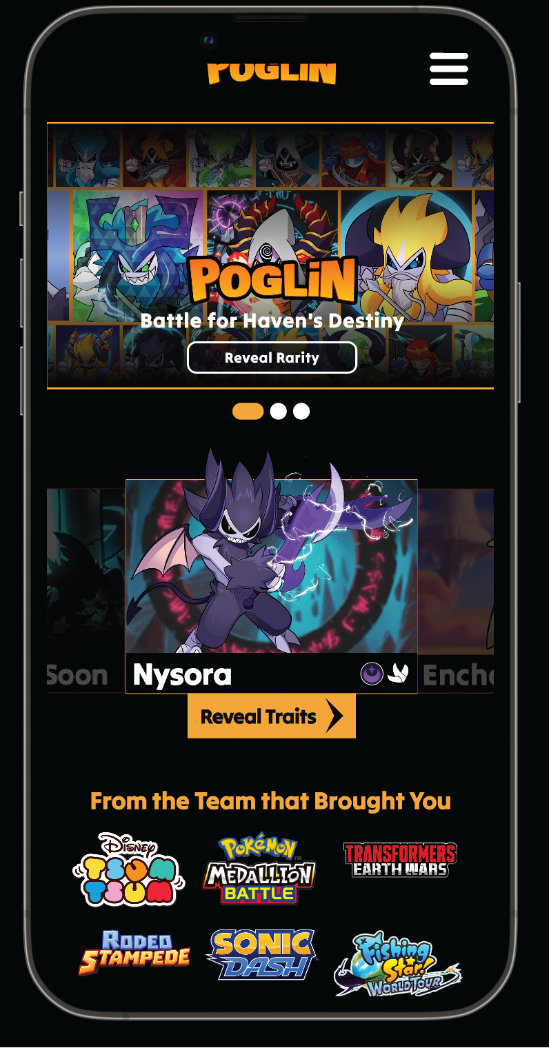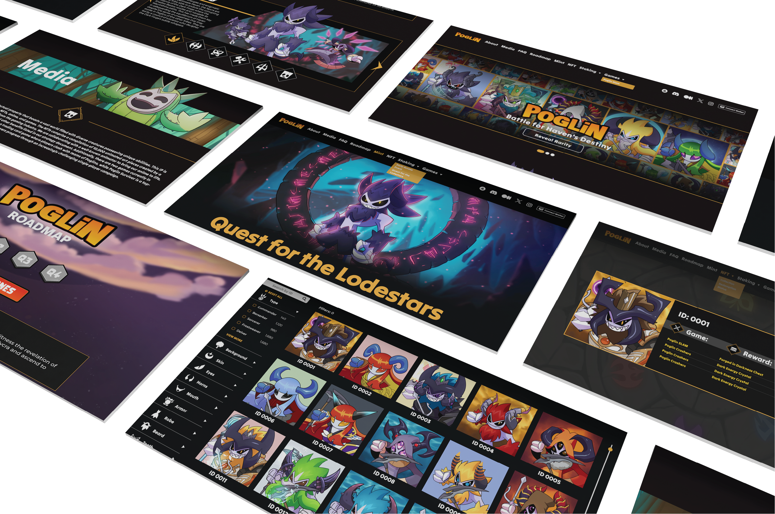 For Gacha Monsters’ emerging IP Poglin, which spans anime, gaming, Web3, and physical goods, I designed the desktop/mobile game UI, official website, and social media graphics. My goal was to strengthen the visual cohesion of this broad universe—balancing intuitive gameplay with the IP’s rich storytelling and animation style. I worked closely with their creative team to build scalable visual systems for future expansion.